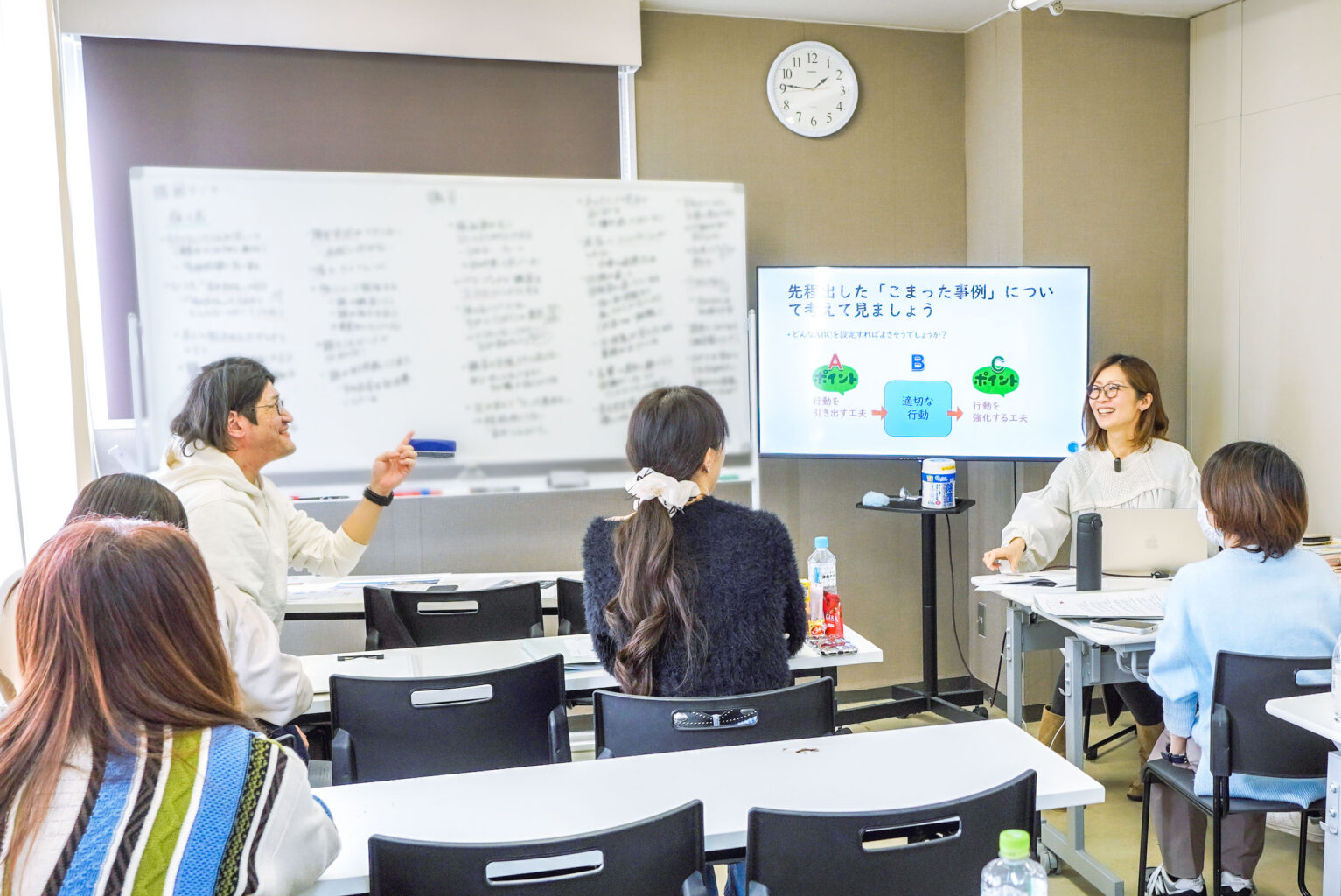 応用行動分析(ABA)の理論を学び、PBSの核となる「A(きっかけ)・B(行動)・C(結果)」のフレームワークを用いた模擬問題に取り組みました。